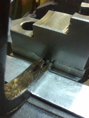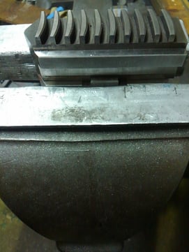 爪をチャックから外し、バイスにて行います。
