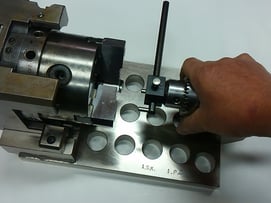 当社でも、生爪による加工が数多く有り、作業者達の勘に頼る作業を少しでも減らし、生爪加工がスムーズに行える様に、測定治具を開発 し、製品化しました。