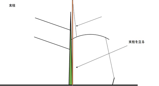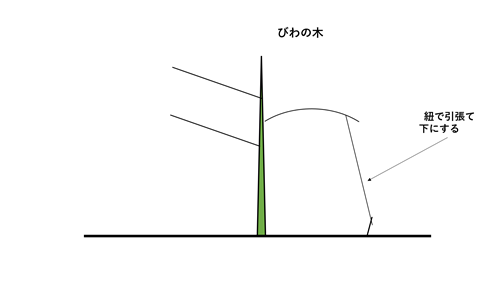 しかしそれには、支柱と曲げる枝に合わせて杭、紐を多く用意しなければなりません。